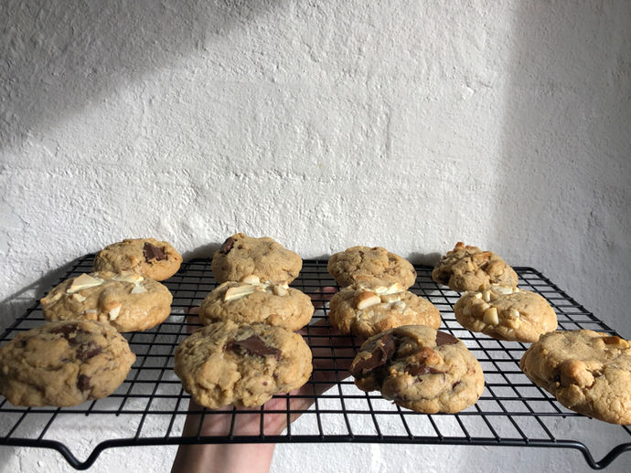Recipe adapted from https://houseofyumm.com/thick-chocolate-chip-cookies/ Makes 12-20 cookies Ingredients - 225g unsalted butter (room...